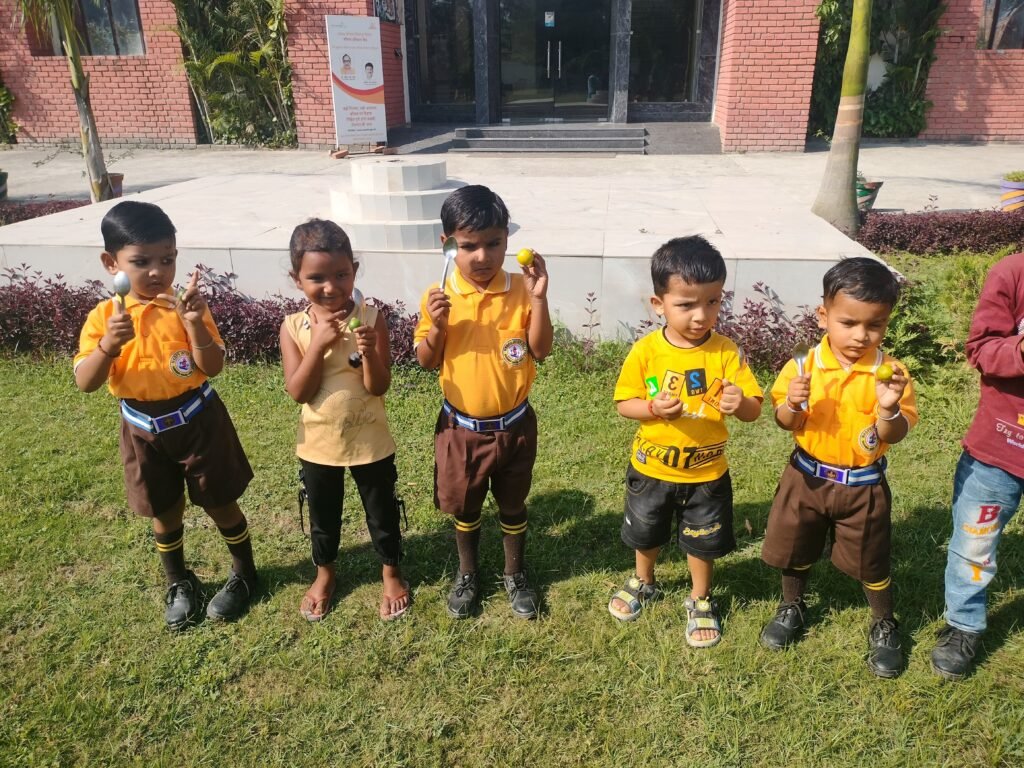 In the school, a “Lemon Spoon Race” activity was organized for the Nursery and KG students. The little children participated in the activity with great enthusiasm and concentration. Through this fun activity, children developed balance, patience, and self-confidence. All the students enjoyed the game, and the atmosphere was filled with joy and excitement.