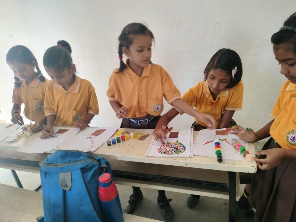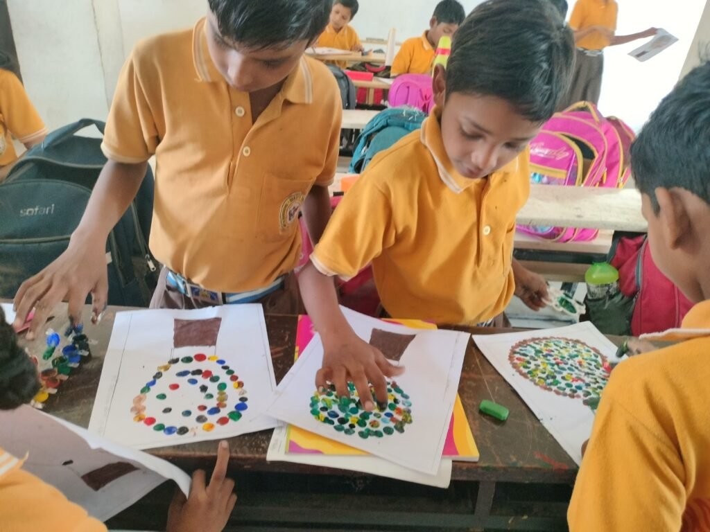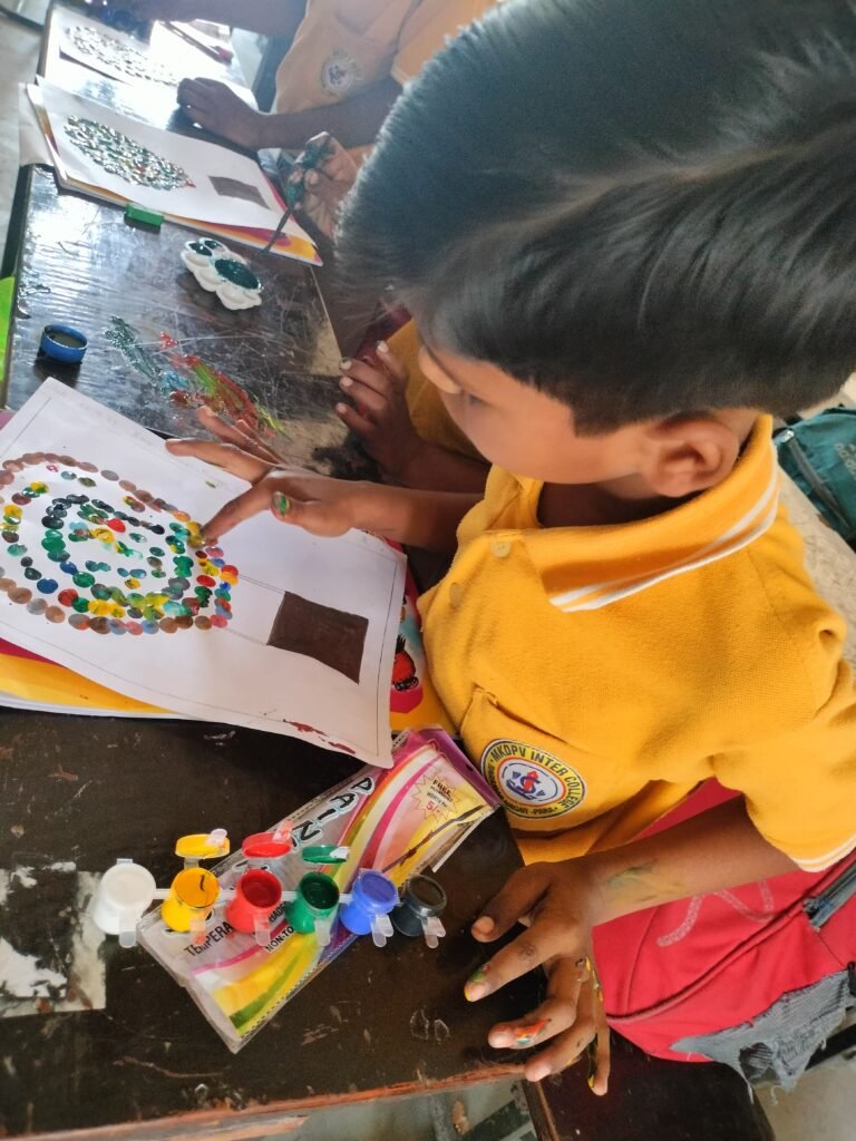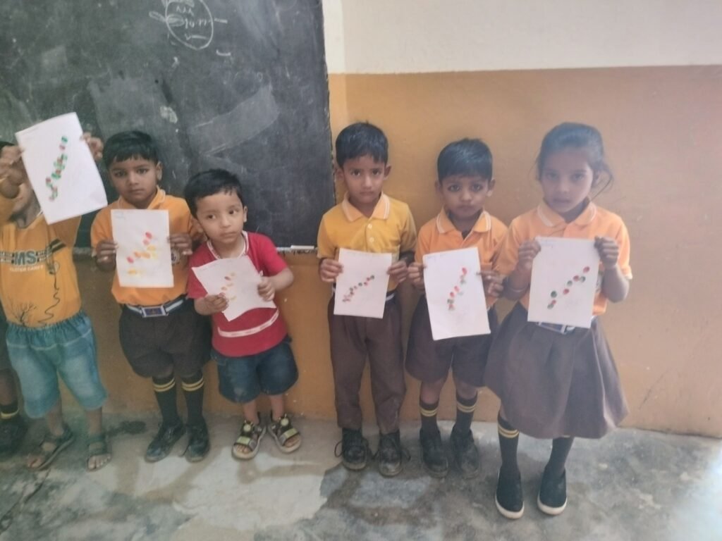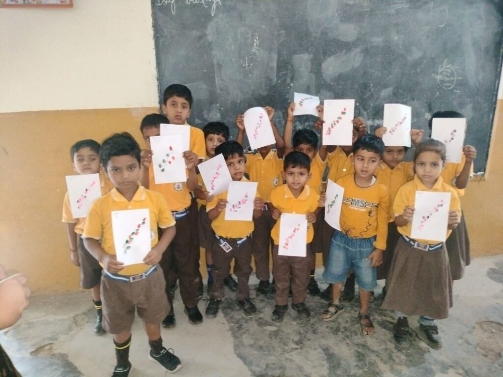 In the school, a Thumb Painting activity was organized for students. In this creative activity, children expressed their imagination using colours. Through thumb painting, children developed their creativity, colour recognition, and fine motor skills. All the students participated enthusiastically and enjoyed the activity a lot.