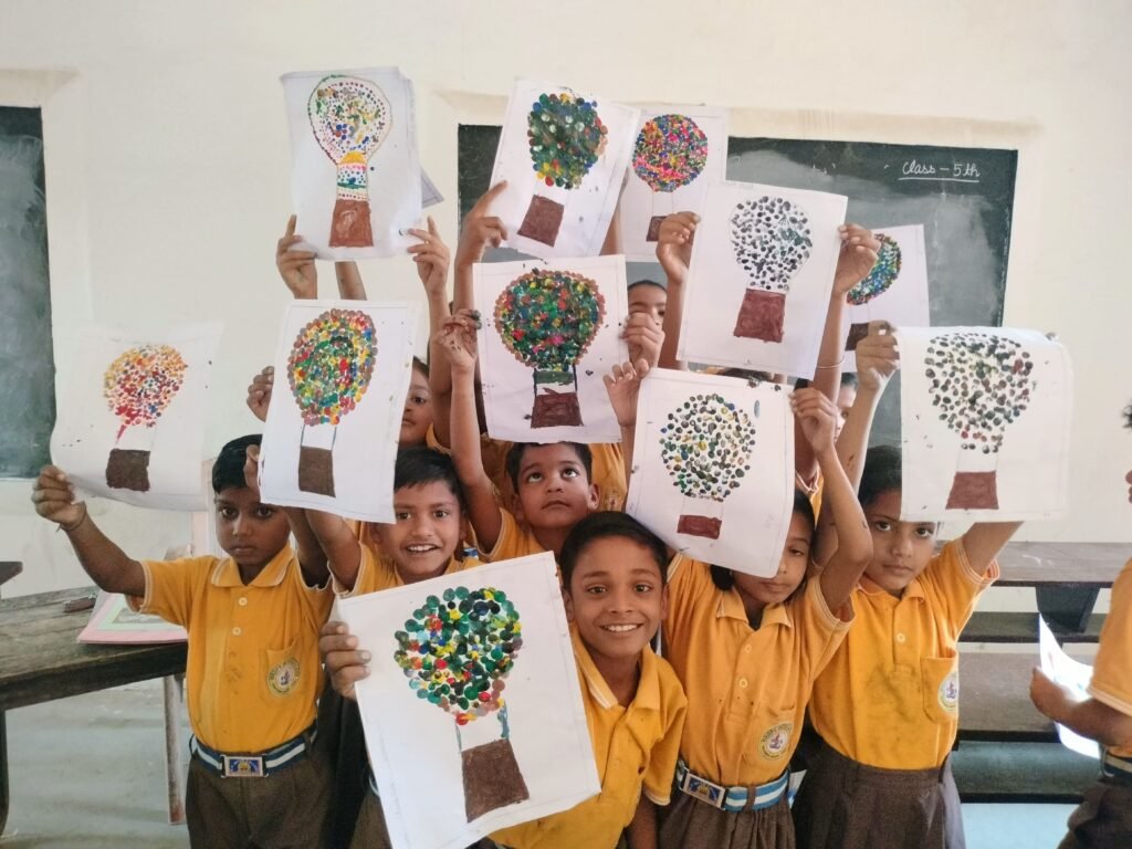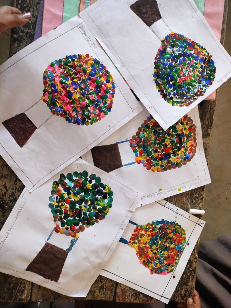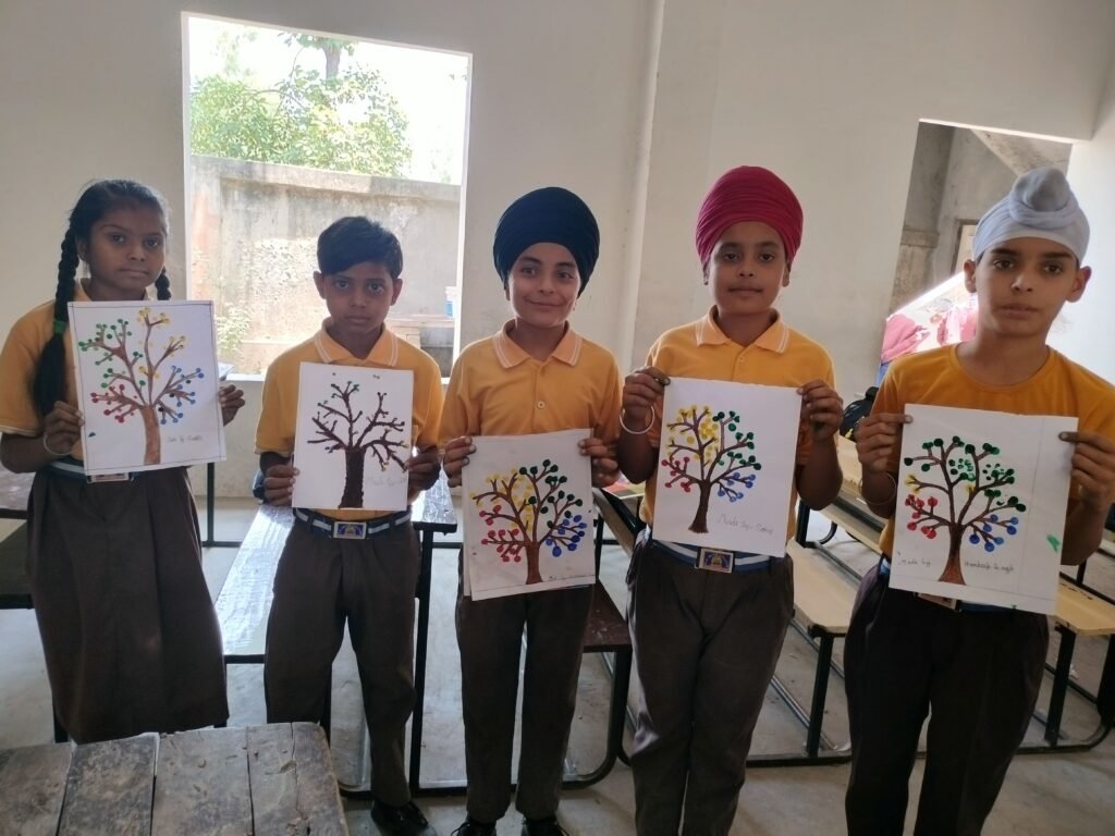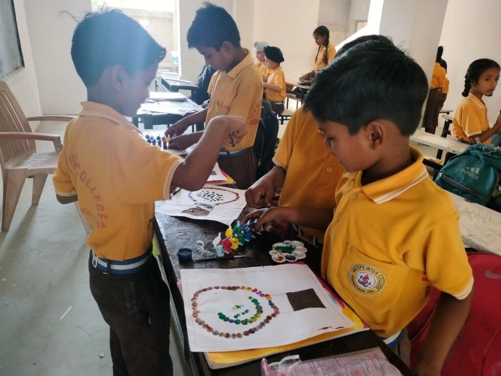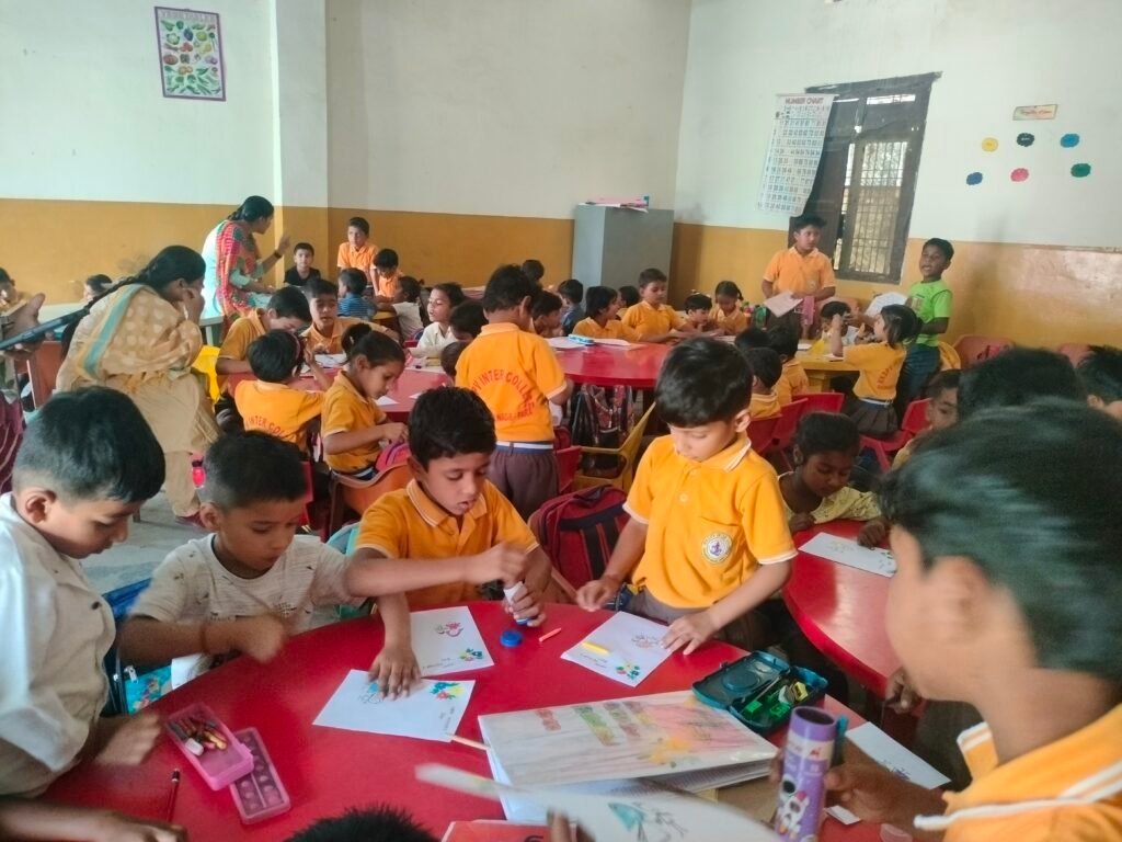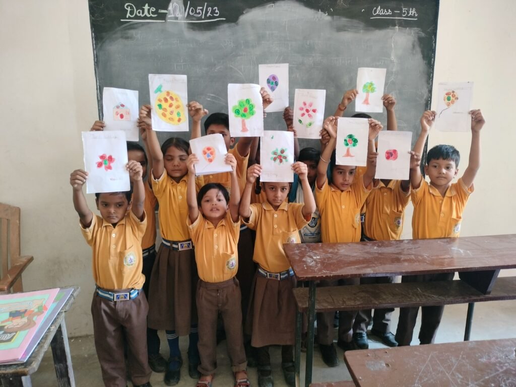 In the school, a Thumb Painting activity was organized for students. In this creative activity, children expressed their imagination using colours. Through thumb painting, children developed their creativity, colour recognition, and fine motor skills. All the students participated enthusiastically and enjoyed the activity a lot.