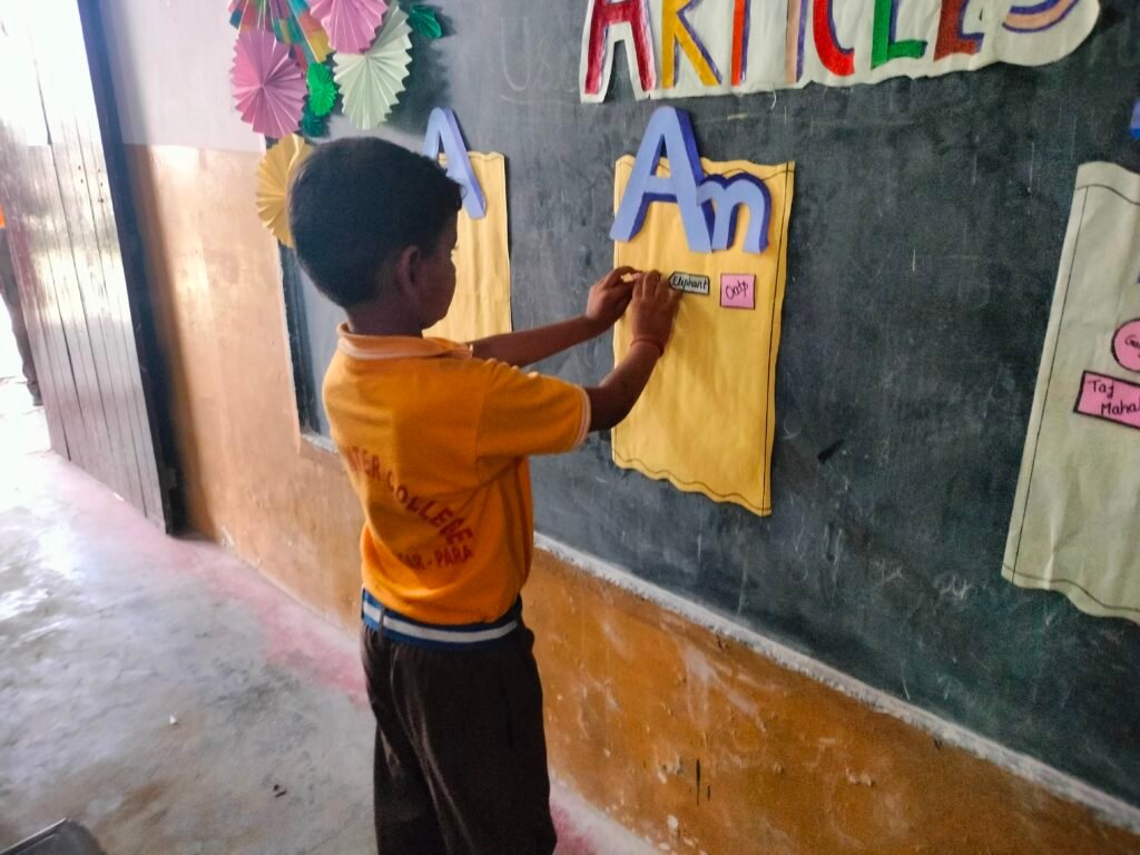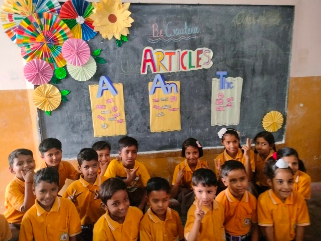 A workshop was organized to teach English grammar to children, in which the children were taught in a very engaging and entertaining manner.