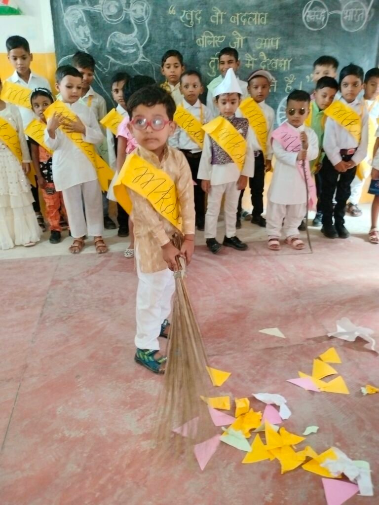 The school children celebrated Gandhi Jayanti 2024 with great enthusiasm and joy. A special morning assembly was organized in the school where teachers and students spoke about the life and ideals of Mahatma Gandhi. The children presented speeches, poems, and short plays highlighting the messages of truth and non-violence. Some students also participated in a cleanliness drive and took a pledge to keep their surroundings clean. The whole atmosphere was filled with patriotism and inspiration. The program encouraged everyone to follow the principles of Mahatma Gandhi in their daily lives.