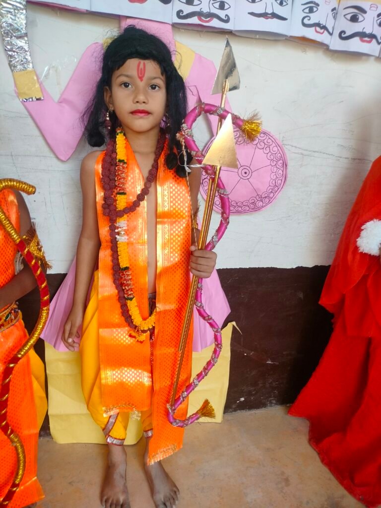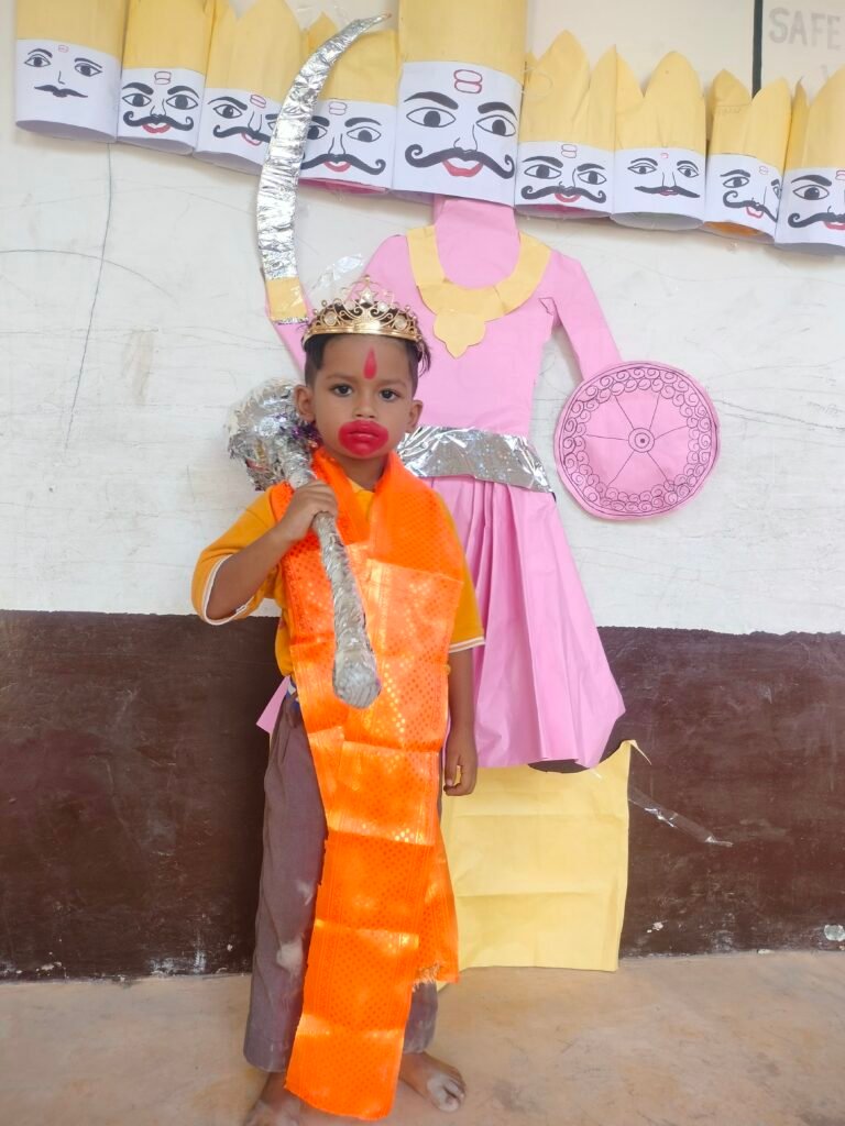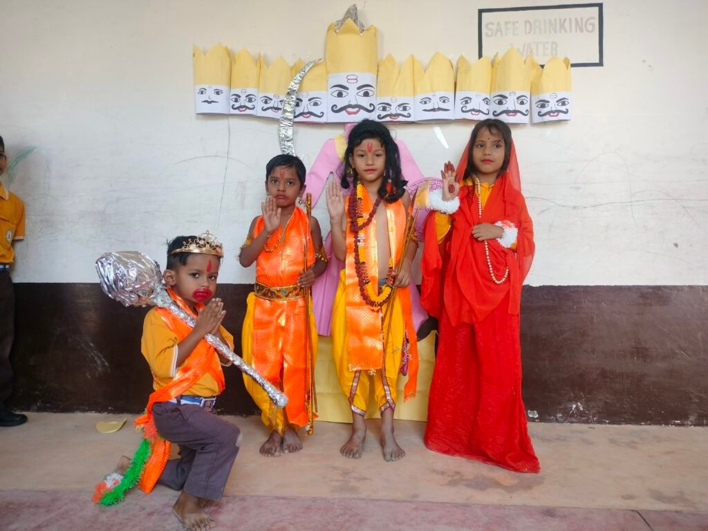 A Dussehra activity was organized in the school with great enthusiasm and joy. The children performed roles of Lord Rama, Sita, and Hanuman and also presented a symbolic act of Ravana Dahan. Teachers explained the message of the victory of good over evil to the students. The colorful costumes, decorations, and performances made the event very attractive. This activity helped the children learn more about our culture and traditions.